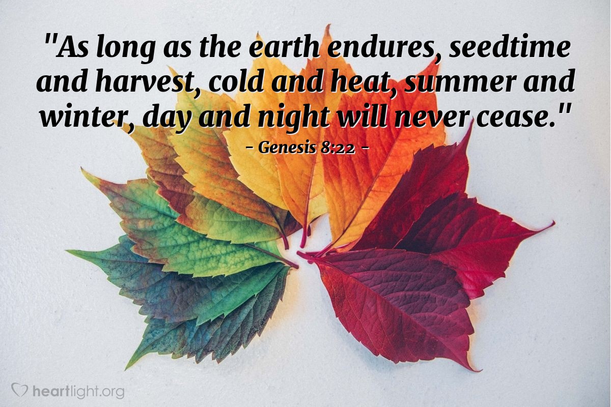 While the earth remains, seedtime and harvest, cold and heat, winter and summer, and day and night shall not cease. —Genesis 8: 22