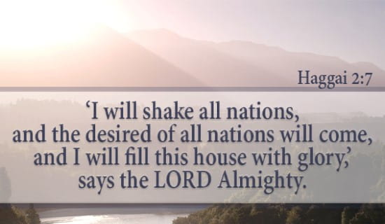 For thus says the Lord of hosts: “…I will shake heaven and earth, the sea and dry land; and I will shake all nations, and they shall come to the Desire of All Nations, and I will fill this temple with glory.” —Haggai 2:6-7