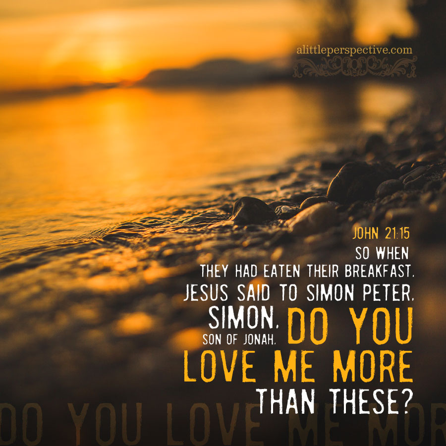 So when they had eaten breakfast, Jesus said to Simon Peter, “Simon, son of Jonah, do you love Me more than these?”—John 21:15