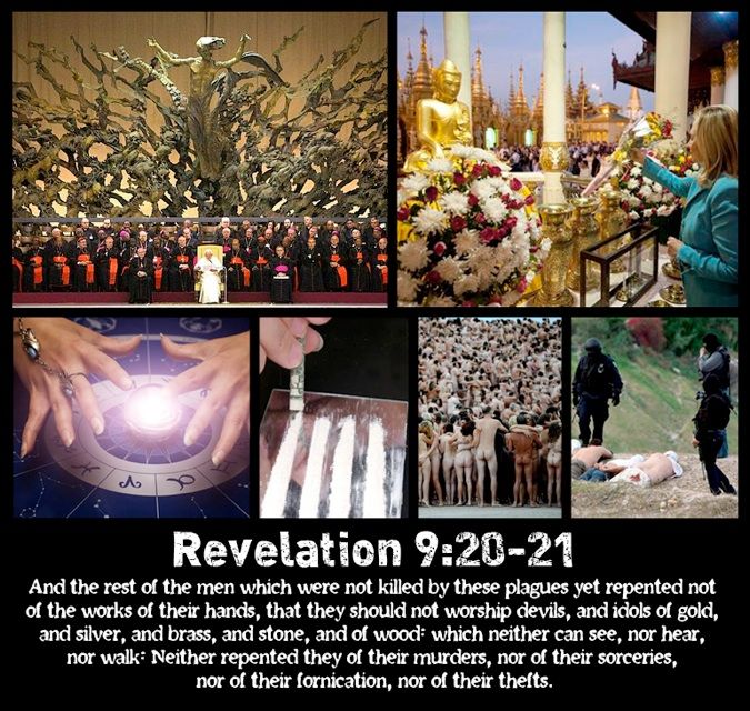 But the rest of mankind, who were not killed by these plagues, did not repent of the works of their hands.… And they did not repent of their murders or their sorceries or their sexual immorality or their thefts.—Revelation 9: 20-21