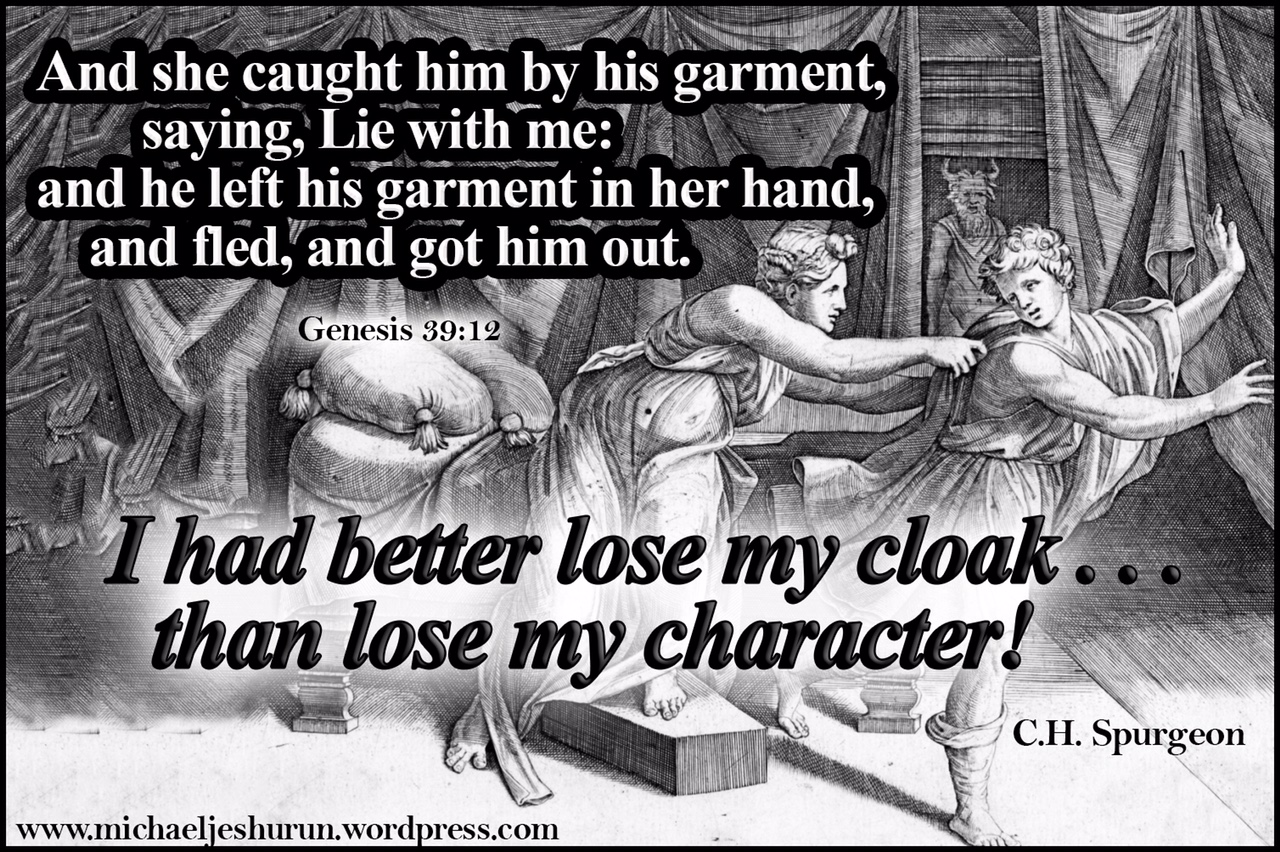 She caught him by his garment, saying, “Lie with me.” But he left his garment in her hand, and fled … —Genesis 39:12