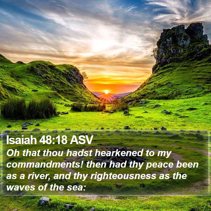 Oh, that you had heeded My commandments! Then your peace would have been like a river, and your righteousness like the waves of the sea. —Isaiah 48: 18