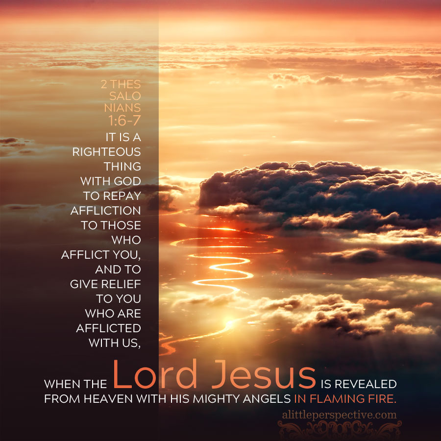 It is a righteous thing with God to repay with tribulation those who trouble you, and to give you who are troubled rest with us when the Lord Jesus is revealed from heaven with His mighty angels…—2 Thessalonians 1: 6-7