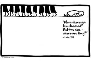 And one of them, when he saw that he was healed, returned, and with a loud voice glorified God, and fell down on his face at His feet, giving Him thanks. And he was a Samaritan. So Jesus answered and said, “Were there not ten cleansed? But where are the nine?”—Luke 17: 15-17