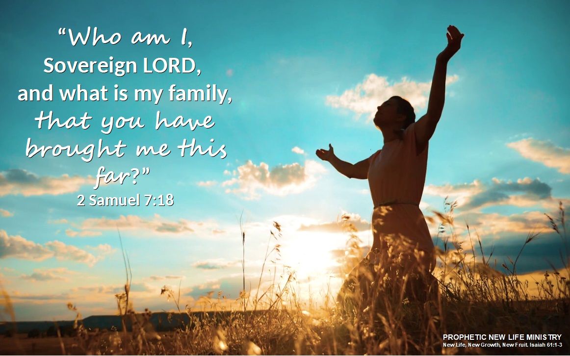 Then King David went in and sat before the Lord; and he said: “Who am I, O Lord God? And what is my house, that You have brought me this far?” —2 Samuel 7:18